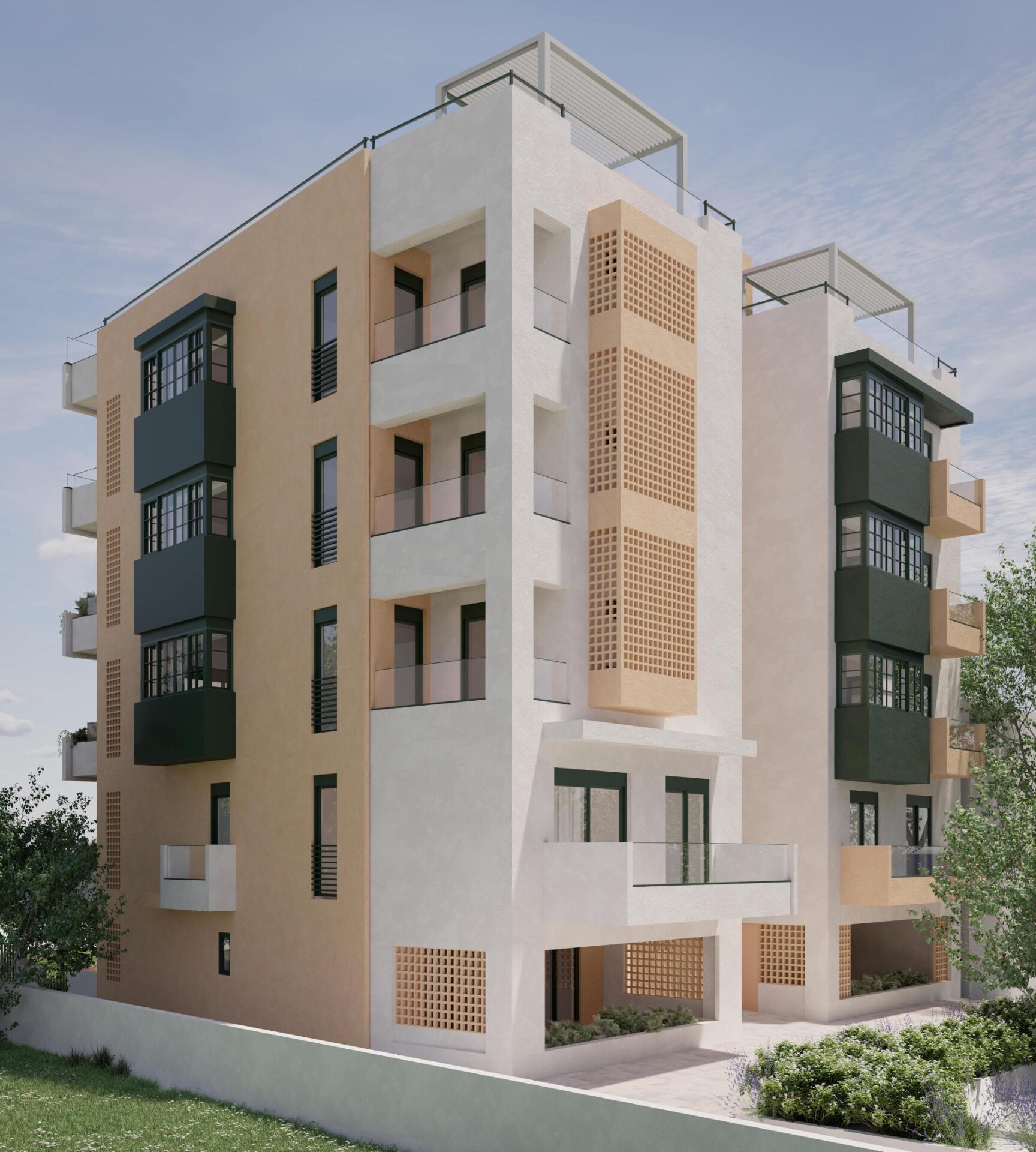 - Provide increased level of privacy between each apartment, through careful position, size and shape of balconies and the use of green areas and Cuadrada tiles as visual barriers.